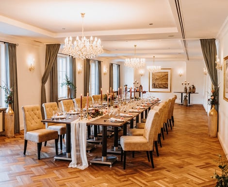 - Drei helle, historische Salons mit stilvollem Parkettboden, flexibel gestaltbar für 20 bis zu 80 Personen