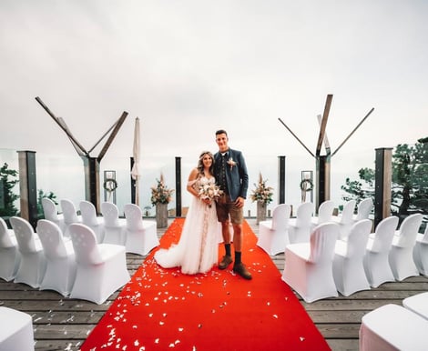 Der Tag beginnt entspannt: Vorbereitung, Styling und Getting Ready finden direkt vor Ort statt – ohne Stress und Wege. Eure Gäste werden herzlich empfangen, bei Schönwetter auf der Terrasse mit traumhaftem Panorama oder wetterunabhängig in der gemütlichen Außenbar. Ein Aperitif in lockerer Atmosphäre sorgt für den perfekten Start in euren Hochzeitstag.