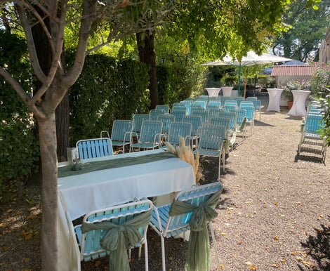 Bei uns im Garten unter den schattigen Bäumen ist eine standesamtliche Hochzeit sowie eine freie Trauung möglich …