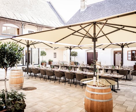 Bei schönem Wetter laden der idyllische Arkadenhof und die Terrasse zum Empfang oder sogar zur Trauung im Freien ein. Eine standesamtliche Trauung auf der Terrasse ist hier ebenfalls möglich – so wird Ihr besonderer Tag noch persönlicher.