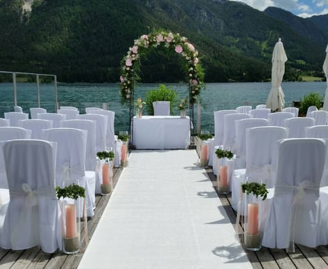 Sagen Sie „Ja“ bei einer freien Trauung auf dem hoteleigenen Seesteg, der Platz für bis zu 70 Gäste bietet. Dieser intime und naturnahe Ort direkt über dem Wasser schafft eine einzigartige Atmosphäre, die Ihre Liebe perfekt in Szene setzt. Für Paare, die eine kirchliche Trauung bevorzugen, liegt die malerische Dreifaltigkeitskirche von Pertisau nur wenige Minuten entfernt.