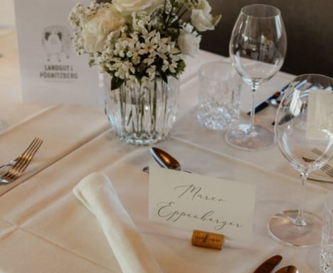 Ob Empfang, Dinner oder Party – das Gut Pössnitzberg bietet den perfekten Rahmen für Hochzeiten mit bis zu 70 Gästen. Feiern Sie in eleganter Atmosphäre auf der Terrasse, in der einladenden Lobby oder im Restaurant Kreuzwirt. Die Umgebung der Weinberge sorgt dabei für eine natürliche und stilvolle Kulisse, die Ihre Feier besonders macht.