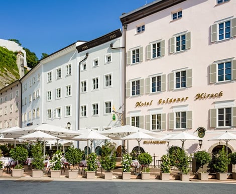 Das Hotel Goldener Hirsch liegt zentral in der berühmten Getreidegasse, nur wenige Minuten vom Standesamt im Schloss Mirabell entfernt. Die historische Altstadt bietet eine traumhafte Kulisse für Ihre Hochzeitsfotos und sorgt für einen unvergesslichen Aufenthalt Ihrer Gäste.