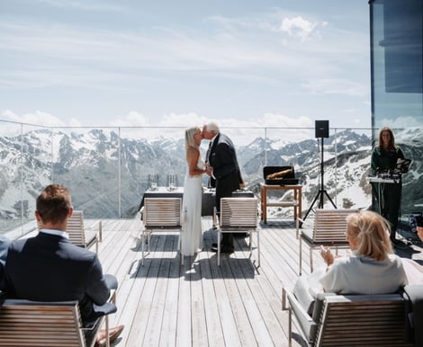 Stellen Sie sich vor, Sie geben sich das Ja-Wort umgeben von der beeindruckenden Kulisse der Ötztaler Alpen – genau das macht das ice Q in Sölden möglich. Diese außergewöhnliche Hochzeitslocation auf 3.048 Metern Seehöhe bietet Ihnen nicht nur einen atemberaubenden Panoramablick auf über 250 Dreitausender, sondern auch eine moderne Architektur, die perfekt mit der hochalpinen Landschaft harmoniert. Bekannt aus dem James-Bond-Film „Spectre“ als futuristische Klinik, ist das ice Q am Gipfel des Gaislachkogls bequem mit der Gaislachkoglbahn erreichbar und garantiert eine Hochzeit, die Ihre Gäste so schnell nicht vergessen werden.