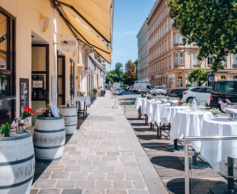 Das IL TORO überzeugt mit einem eleganten, dunklen Design, das eine warme und festliche Stimmung schafft. Die Räume sind flexibel und passen sich genau euren Wünschen an – egal ob ihr eine intime Feier mit wenigen Gästen oder eine größere Hochzeit mit bis zu 120 Personen plant. Die Raumaufteilung lässt sich individuell gestalten, sodass ihr eure Tische und Sitzbereiche ganz nach eurem Geschmack arrangieren könnt. Und wenn das Wetter mitspielt, lädt der gemütliche Schanigarten mit Blick auf den Rudolfspark zum Verweilen ein – hier könnt ihr bis Mitternacht feiern, bevor es drinnen bis in die frühen Morgenstunden weitergeht.
