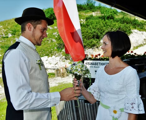 Suchen Sie nach einer außergewöhnlichen Hochzeitslocation mit atemberaubender Bergkulisse? Die Kranabethhütte auf 1.530 Metern Höhe, auf dem sonnigsten Hochplateau Oberösterreichs, ist der perfekte Ort für Ihre Traumhochzeit. Nur zehn Gehminuten von der Bergstation der Feuerkogelseilbahn in Ebensee entfernt, verbindet diese Hütte rustikalen Charme mit herzlicher Gastfreundschaft. Genießen Sie einen spektakulären Panoramablick über den Traunsee und die umliegenden Berge bis hin zum Dachsteinmassiv – ein unvergessliches Erlebnis für Sie und Ihre Gäste.