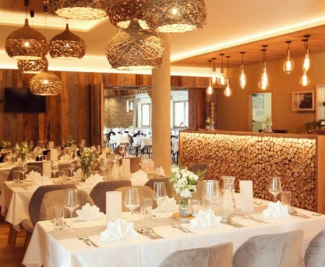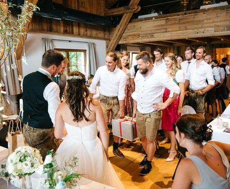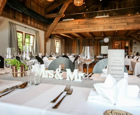 Das Landhotel Laudersbach passt sich ganz Ihren Wünschen an. Im Mittelpunkt steht der Hochzeitsstadl – eine liebevoll restaurierte Scheune, die historischen Flair mit moderner Technik verbindet. Hier finden bis zu 120 Gäste Platz für ein festliches Dinner und ausgelassene Feiern. Für kleinere, intime Runden bieten die gemütlichen Stuben im Gasthof Raum für bis zu 40 Personen. Der Empfang kann im idyllischen Innenhof oder auf der Gartenterrasse stattfinden – so haben Sie für jeden Moment den passenden Ort.
