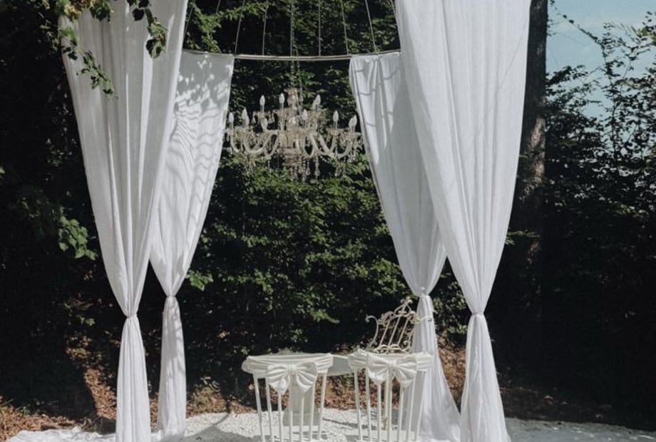 Für Ihre Vorbereitungen oder eine intime Feier im kleinen Kreis steht Ihnen außerdem ein modernes Chalet für bis zu sechs Personen direkt in der Nähe zur Verfügung – ideal, um entspannt in den großen Tag zu starten.