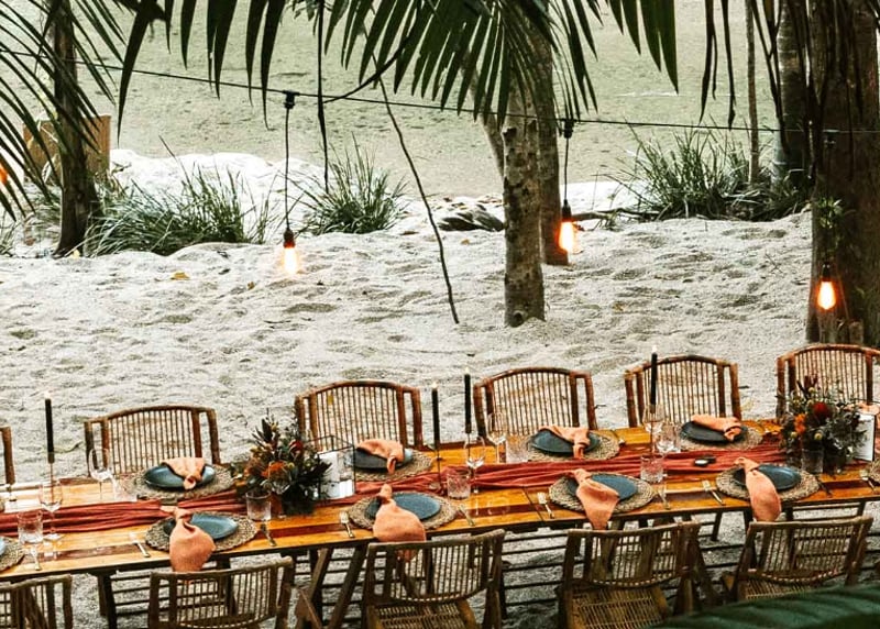 Once again, the boho aesthetic is a big thing for weddings. Queensland brides, especially ones around the Sunshine Coast and Whitsundays mix relaxed beach elements with boho vibes and include ambient fairy lights, scatter cushions, earthy tones, macramé, linen, rattan — you name it, all the hallmarks from boho style. When mixed with the serene vibe of coastal Queensland, the boho aesthetic creates a wonderful setting for your wedding. If you don't resonate with boho vibes, a bold colour palette is also in style at the moment.