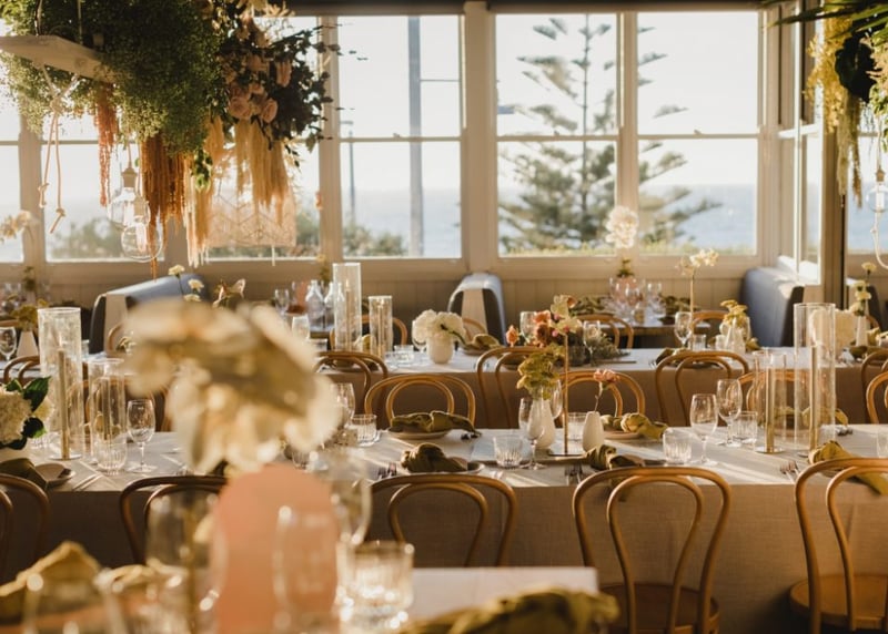 Once again, the boho aesthetic is a big thing for weddings. Queensland brides, especially ones around the Sunshine Coast and Whitsundays mix relaxed beach elements with boho vibes and include ambient fairy lights, scatter cushions, earthy tones, macramé, linen, rattan — you name it, all the hallmarks from boho style. When mixed with the serene vibe of coastal Queensland, the boho aesthetic creates a wonderful setting for your wedding. If you don't resonate with boho vibes, a bold colour palette is also in style at the moment.