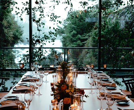 Our venue spaces offer unique atmospheres to suit your vision. The Rainforest Ballroom provides a spacious and elegant indoor setting, ideal for seated receptions and larger gatherings. The Wine Cellar—our most popular wedding venue—features breathtaking ocean views overlooking the dramatic surge channel and is ideal for seated dinners of up to 45 guests or cocktail-style receptions for up to 75 guests.