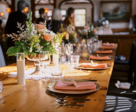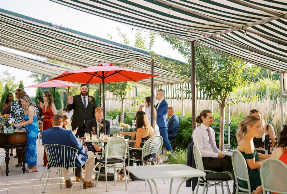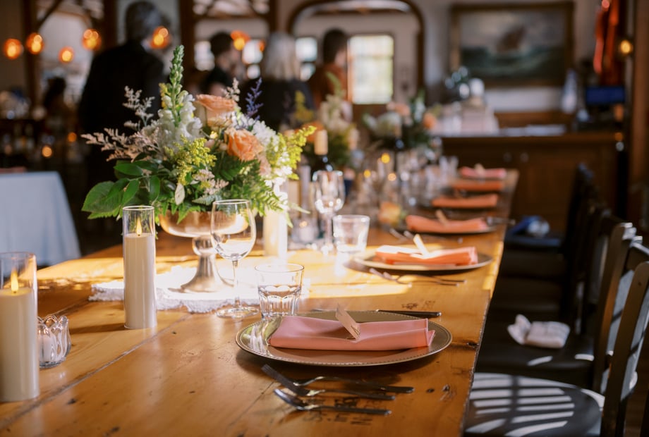 Together, our indoor dining area and patio can accommodate up to 150 guests. The indoor dining room comfortably fits up to 100 guests, whether for a mix-and-mingle reception or a formal gathering using our round banquet tables. To simplify your planning, we are pleased to host both your wedding ceremony and reception on-site, complete with exceptional in-house catering.
