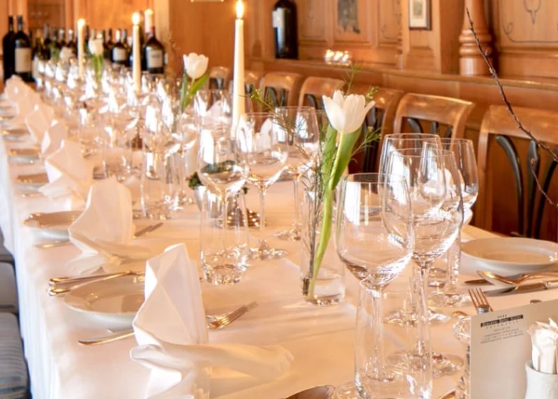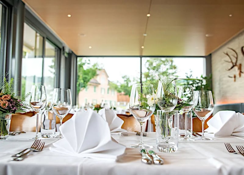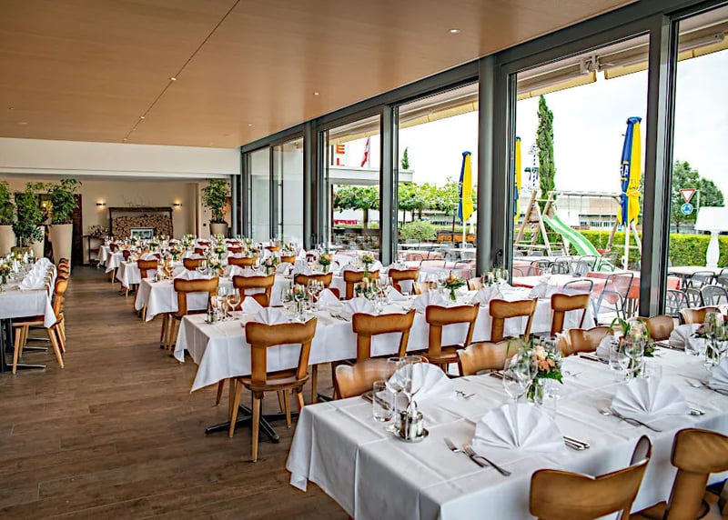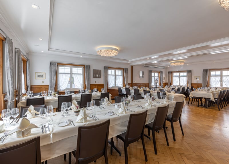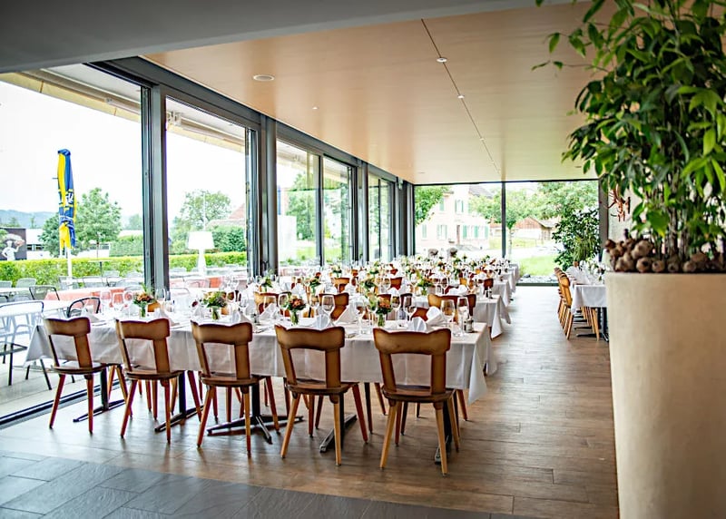 • Durchschnittliche Kosten: Rechnet mit Kosten zwischen CHF 200 und CHF 450+ pro Gast für ein Hochzeitspaket. Dieses beinhaltet meist den Apéro, ein 3- bis 4-Gänge-Menü, eine Getränkepauschale und die Miete des Raumes.