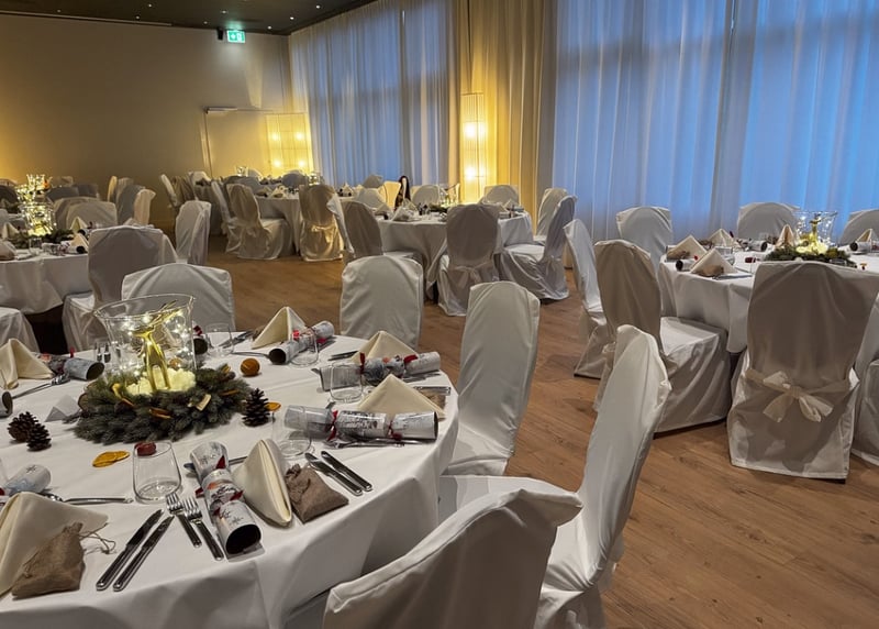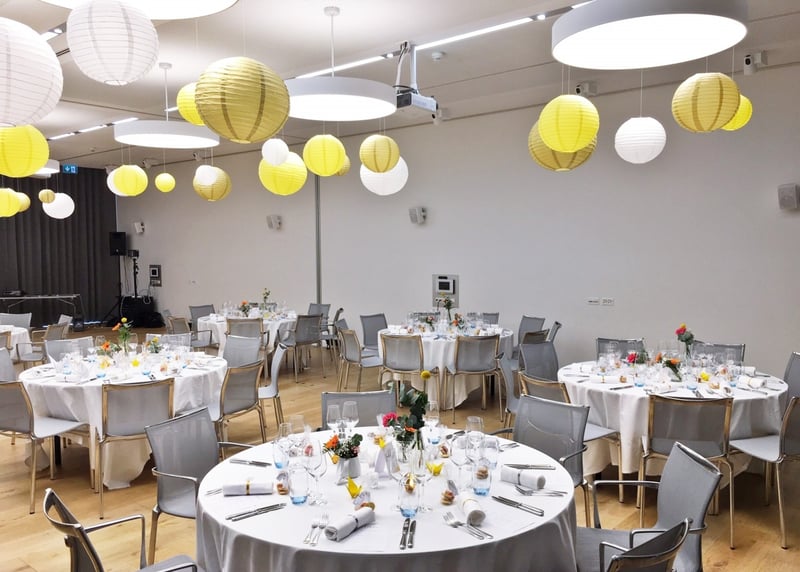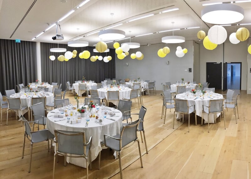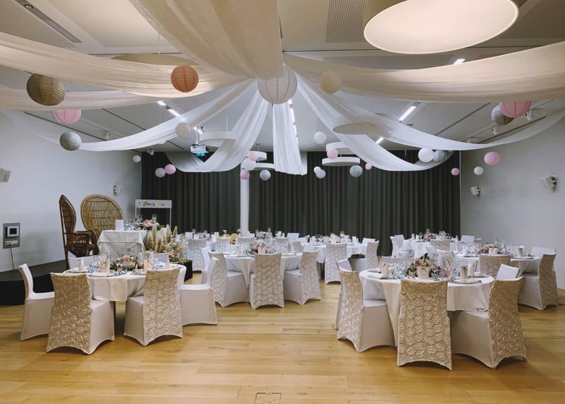 • Was ist inbegriffen? Lest die Angebote genau durch. Übliche Inklusivleistungen sind: Raummiete, Menü, Getränke, Servicepersonal und oft auch eine Basisdekoration.