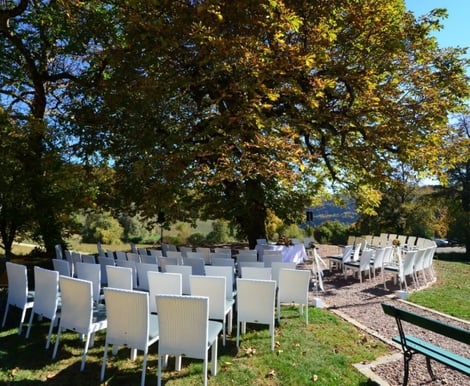 Für eure Trauung bietet der weitläufige Park des Hotels eine traumhafte Kulisse. Bei schönem Wetter könnt ihr unter einem majestätischen Kastanienbaum „Ja“ sagen. Sollte das Wetter nicht mitspielen, steht ein Zelt als wetterfeste Alternative bereit.