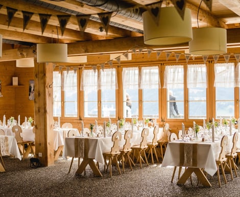 Das Bergrestaurant Bühlberg verbindet modernen, hellen Stil mit gemütlicher, rustikaler Atmosphäre. Die großzügigen Räume bieten Ihnen und Ihren Gästen einen fantastischen Panoramablick und lassen sich flexibel an Ihre Wünsche anpassen – egal ob Trauung, Apéro, festliches Dinner oder ausgelassene Party.