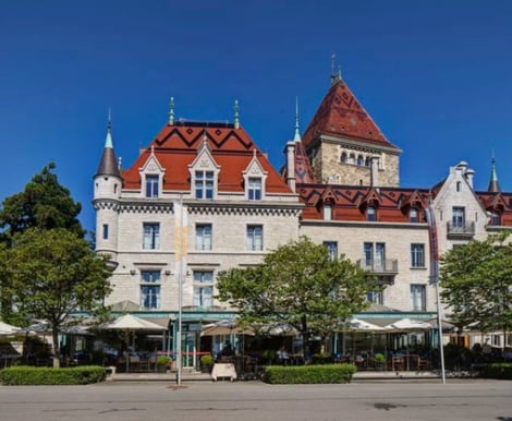 Das Château d'Ouchy ist ein echtes Juwel für Paare, die sich eine unvergessliche Hochzeit am Ufer des Genfersees in Lausanne wünschen. Dieses Schloss aus dem 12. Jahrhundert verbindet historische Architektur mit einer traumhaften Lage – mit Blick auf den See und die Alpen – und einem Hauch modernen Luxus. Das im neugotischen Stil umgebaute Vier-Sterne-Hotel aus dem späten 19. Jahrhundert liegt eingebettet in einen wunderschönen Park und schafft so die perfekte Kulisse für Ihren großen Tag.