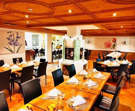 - Wintergarten & Cheminée-Raum: Diese gemütlichen Räume im Erdgeschoss verbinden Holz, Glas und einen offenen Kamin zu einer modernen Atmosphäre – ideal für Gesellschaften bis zu 50 Personen.