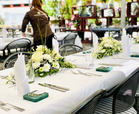 - Garten & Terrasse: Für einen entspannten Aperitif oder eine Feier unter freiem Himmel stehen Ihnen unser idyllischer Garten und die Terrasse mit Platz für bis zu 100 Gäste zur Verfügung.