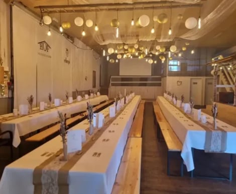 Der Hof Herrendingen ist ein traditionsreicher Bio-Bauernhof, der seit Generationen liebevoll bewirtschaftet wird. Die natürliche Ruhe und das authentische Flair schaffen eine entspannte und herzliche Stimmung. Die hölzerne Eventhalle verströmt rustikalen Charme und bietet Ihnen eine vielseitige Bühne für Ihre Hochzeitsdekoration – ob elegant, modern oder unkonventionell, hier sind Ihrer Kreativität keine Grenzen gesetzt.