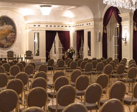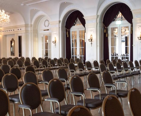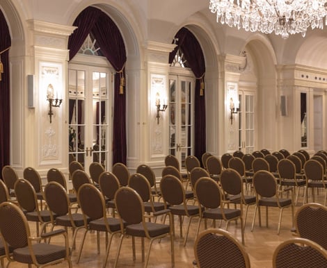 - Le Salon Royal: Mit fast 300 m² der größte und prunkvollste Saal – ideal für Bankette mit bis zu 220 Gästen.