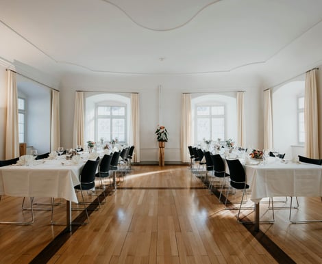Das Hotel Kloster Fischingen ist ein aktives Kloster und ein Ort der Ruhe. Deshalb sind Feiern mit lauter Musik und Tanz nicht möglich – perfekt für Paare, die eine elegante, stimmungsvolle Hochzeit ohne Party-Charakter wünschen. Leise Hintergrundmusik zum Apéro oder während des Essens ist selbstverständlich erlaubt. Die denkmalgeschützten historischen Gebäude verleihen Ihrer Feier einen exklusiven und unvergesslichen Charakter.