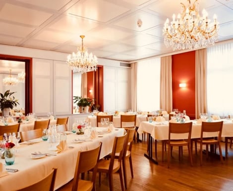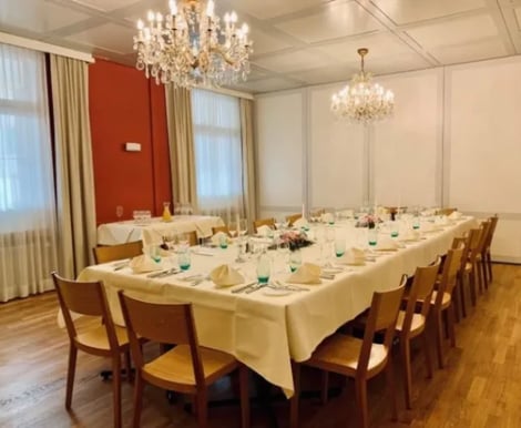 Das Rössli bietet verschiedene Räume, die sich ideal für Hochzeitsgesellschaften mit bis zu 90 Gästen eignen. Der Hauptsaal lässt sich durch eine flexible Trennwand in zwei Bereiche teilen – so passen Sie den Raum ganz nach Größe und Stimmung Ihrer Feier an. Ob Sie eine gemütliche, rustikale Atmosphäre in der Gaststube oder ein elegantes Dinner mit weiß gedeckten Tischen im Speiserestaurant wünschen – hier finden Sie das passende Ambiente für Ihren Stil.