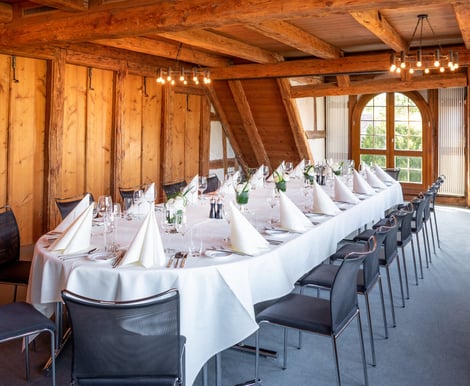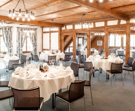 Egal, ob Sie eine intime Feier oder ein großes Fest planen – das Hotel zum goldenen Kreuz bietet verschiedene Säle und Stuben, die sich flexibel an Ihre Wünsche anpassen lassen. Die Kombination aus historischen Elementen wie originalen Holzbalken und hellem, einladendem Interieur schafft eine festliche und behagliche Stimmung.