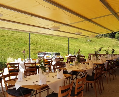Ob intime Feier mit 15 Gästen oder großes Fest mit bis zu 150 Personen – das Lochstafel passt sich Ihren Wünschen an. Die großzügige Terrasse lädt zu einem stimmungsvollen Aperitif unter freiem Himmel ein und bietet Platz für bis zu 150 Gäste. Für das festliche Abendessen und die anschließende Party steht Ihnen das Restaurant mit Barbereich zur Verfügung, das bei Banketten bis zu 80 sitzende Gäste bewirten kann. Die Location kann exklusiv für Ihre Hochzeit gebucht werden, sodass Sie ungestört feiern können.