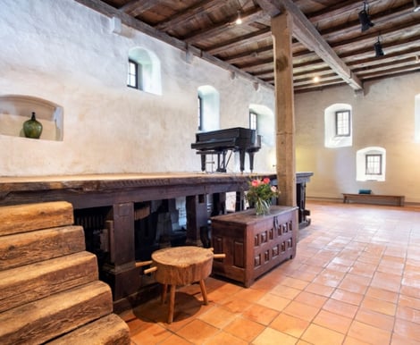 - Großer Festsaal: Platz für bis zu 70 Gäste mit ausgezeichneter Akustik. Der ehemalige Mahltisch als Bühne sorgt für besondere Highlights bei Reden oder musikalischen Darbietungen.