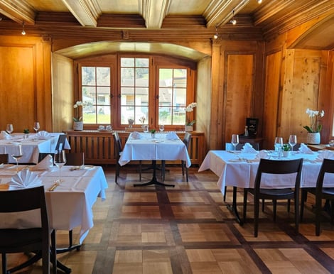 Ein erfahrenes Team begleitet Sie bei der Planung und Durchführung Ihres Hochzeitsapéros oder -essens, damit Ihr Tag perfekt wird. Das hauseigene Restaurant ist bekannt für seine ausgezeichnete französische Küche und wurde mit 14 Gault-Millau-Punkten bewertet. Bitte beachten Sie, dass der Restaurantbetrieb zum 13. Juli 2025 eingestellt wird – planen Sie Ihre Feier daher rechtzeitig.