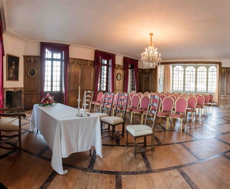- Salle Harrach: Ein beheizbarer Raum mit Schlossblick, perfekt für Empfänge mit bis zu 40 Gästen – auch in der kühleren Jahreszeit.