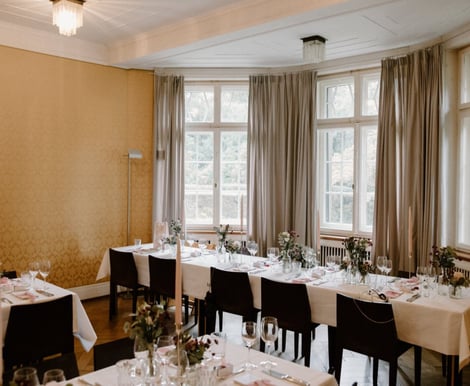 Die Villa Sträuli stellt Ihnen im Erdgeschoss drei miteinander verbundene Salons zur Verfügung, die exklusiv für Ihre Feier reserviert sind. Diese Räume schaffen eine edle und entspannte Atmosphäre – perfekt für Empfang, Dinner und Party. Ergänzt wird das Angebot durch ein modernes Bistro, das flexibel auf Ihre Wünsche eingeht.