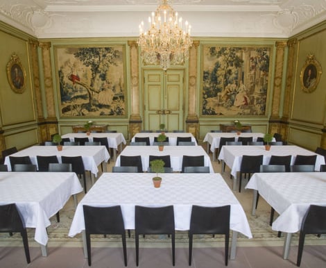 - Die Terrasse: An warmen Tagen ist die große Gartenterrasse der perfekte Ort für Ihren Apéro mit bis zu 200 Gästen oder ein Bankett unter freiem Himmel für bis zu 96 Personen.