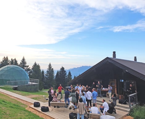 Stellen Sie sich Ihre Trauung unter freiem Himmel vor, mit den Alpen als natürliche Zeugen. Ob auf einer der großzügigen Terrassen mit weitem Blick oder in den stilvollen Innenräumen, die sich zur Natur öffnen – das Whitepod Original schafft den perfekten Rahmen für Ihr Ja-Wort und den anschließenden Empfang.
