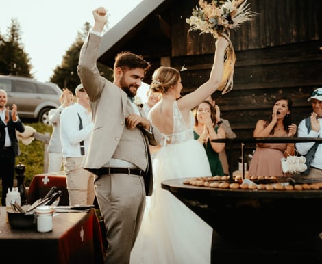 Feiern Sie mit bis zu 150 Gästen in einem modernen Eventbereich von 130 Quadratmetern, der Ihnen einen spektakulären Panoramablick auf das Tal und die umliegenden Gipfel bietet. Die futuristisch gestalteten Pods und gemütlichen Holz-Cabins sind nicht nur außergewöhnliche Übernachtungsmöglichkeiten, sondern auch eine traumhafte Kulisse für Ihre Hochzeitsfotos.