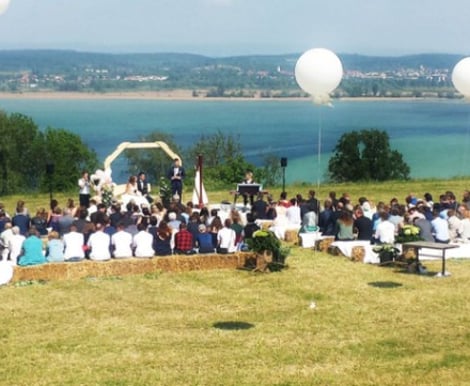Suchen Sie nach einer einzigartigen Hochzeitslocation, die Natur, Charme und eine atemberaubende Aussicht vereint? Der Zelglihof liegt erhöht über Ermatingen und bietet Ihnen einen unvergleichlichen Blick über die Untersee-Rhein-Region bis hin zu Konstanz und den Vorarlberger Alpen. Diese rustikale Event-Scheune ist der perfekte Ort für Paare, die ihre Hochzeit in einer entspannten, grünen Umgebung feiern möchten.