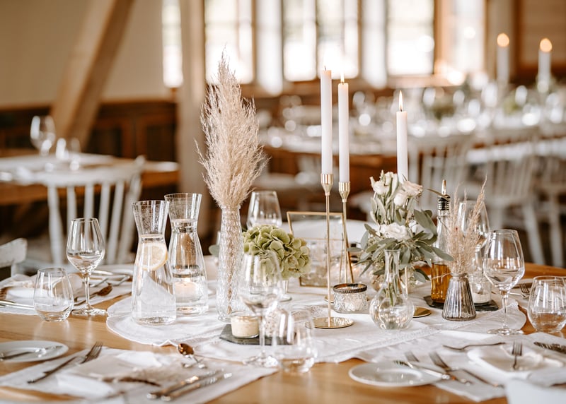 Zu den wichtigsten Ausgaben, die zu den Kosten einer Hochzeit in Deutschland beitragen, gehören der Veranstaltungsort, das Catering, Blumen und Dekoration, Musik, Fotografie und Videografie sowie das Brautkleid und die Kleidung des Bräutigams.