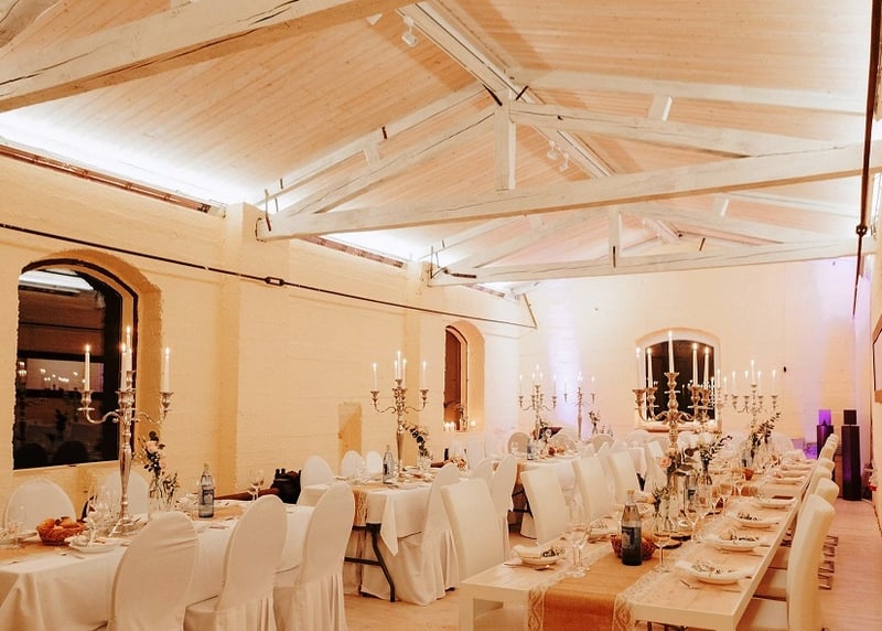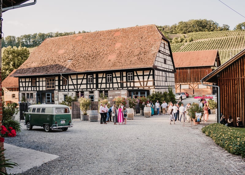 • Weingut Vollmayer in der Nähe von Stuttgart: Hier schlagt ihr gleich zwei Fliegen mit einer Klappe, denn ihr habt Weingut und romantische Scheune in einem. Mit bis zu 120 Gästen könnt ihr hier einen atemberaubenden Blick auf die Landschaft genießen.