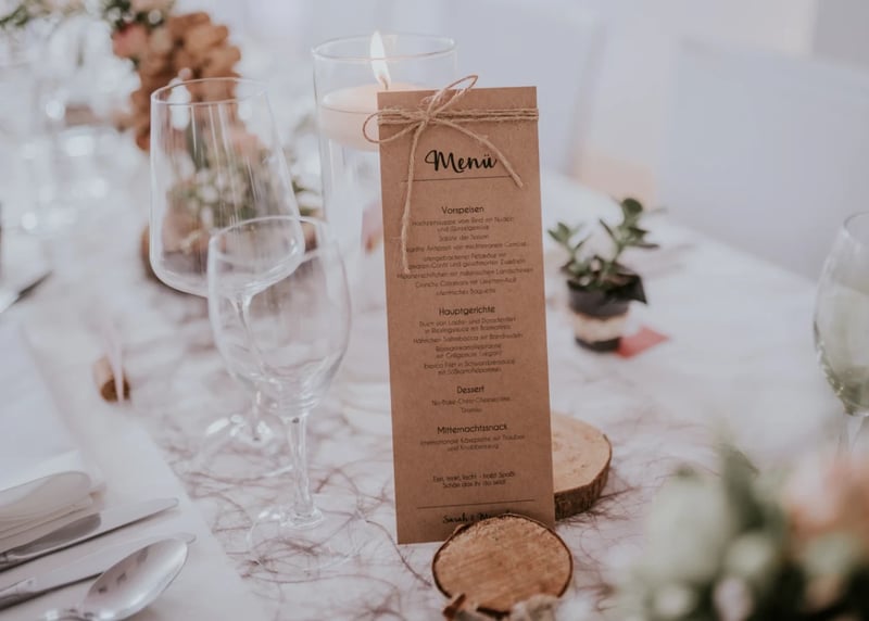 F�r das Catering eignen sich Bio-Produkte und saisonale Men�s perfekt � so unterst�tzt ihr lokale Bauern und minimiert den �kologischen Fu�abdruck. Setzt auf recycelbare oder wiederverwendbare Dekorationen wie Glasvasen, Stoffservietten und nat�rliche Materialien. Die sehen nicht nur gut aus, sondern freuen auch die Umwelt.