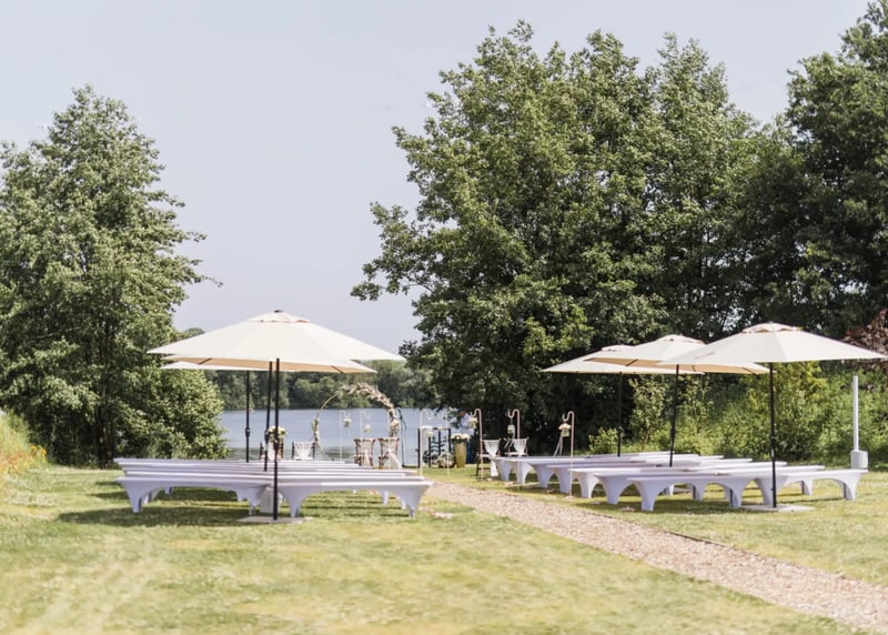 Altes Landgut am See (Niedersachsen): Wie wäre es mit einer Scheune in Deutschland, die direkt an einem See liegt? Diese Location bietet eine wunderbare Kombination aus Wasserblick und rustikalem Charme – ideal für eine romantische Boho-Hochzeit.
