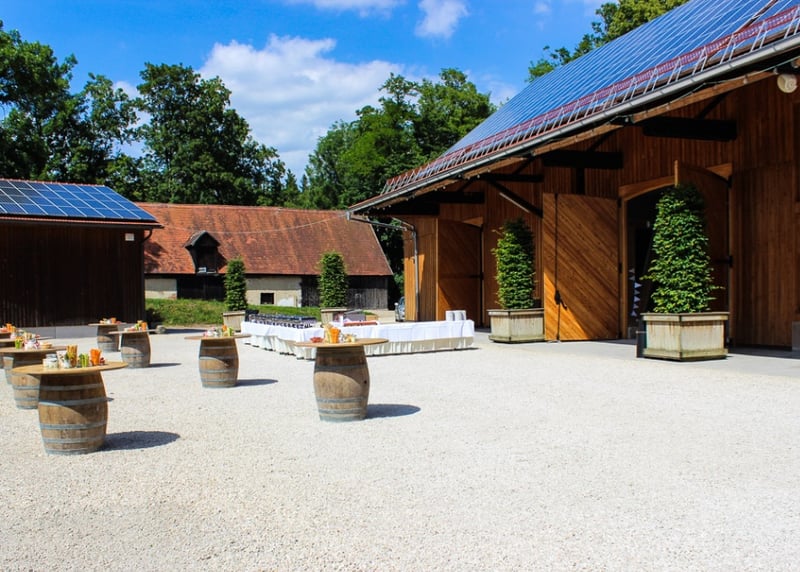 • Weingut Vollmayer in der Nähe von Stuttgart: Hier schlagt ihr gleich zwei Fliegen mit einer Klappe, denn ihr habt Weingut und romantische Scheune in einem. Mit bis zu 120 Gästen könnt ihr hier einen atemberaubenden Blick auf die Landschaft genießen.