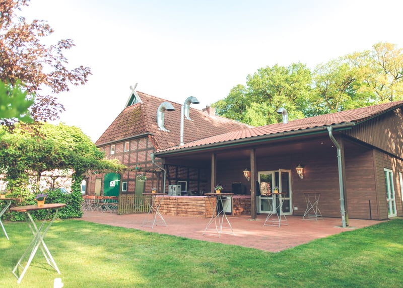 • Kuhstall in der Nähe von Hamburg: Der umgebaute Kuhstall verfügt über ein geräumiges Interieur und bietet in gemütlicher Atmosphäre Platz für bis zu 120 Gäste. Auch hier gibt es einen schönen Garten für Zeremonien und Empfänge im Freien.