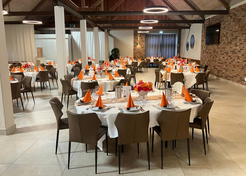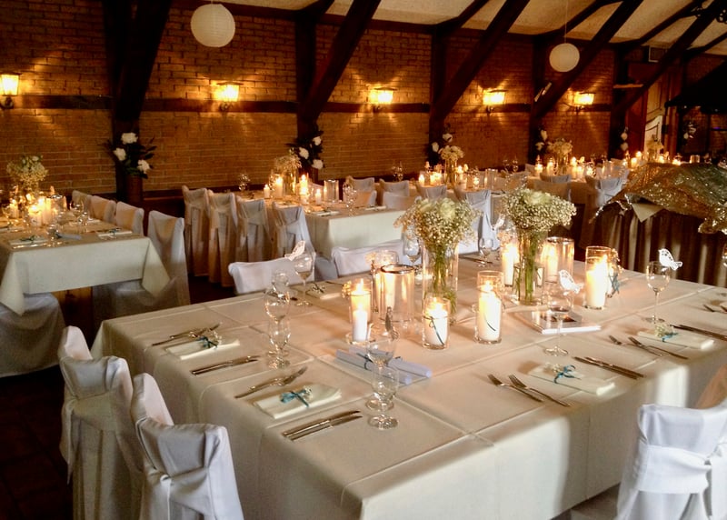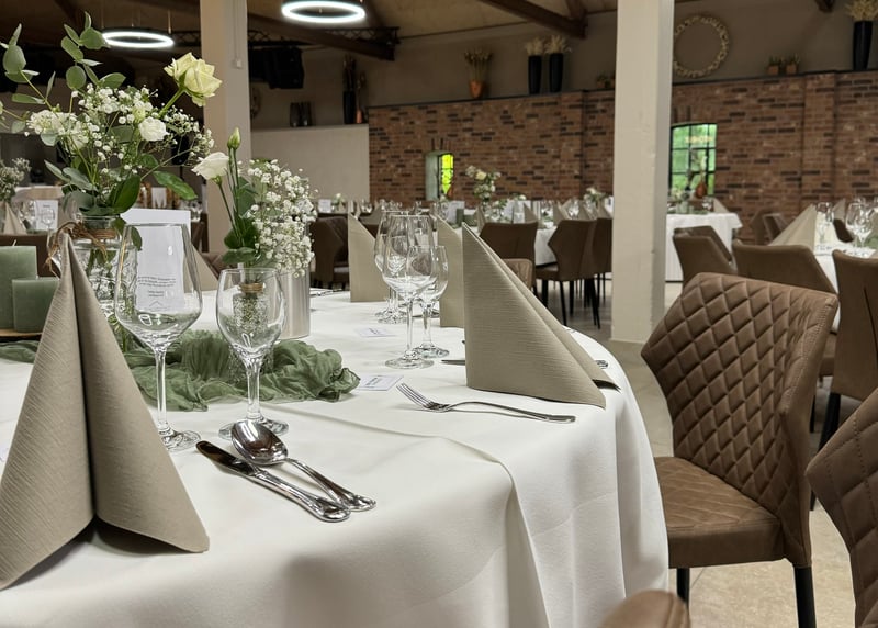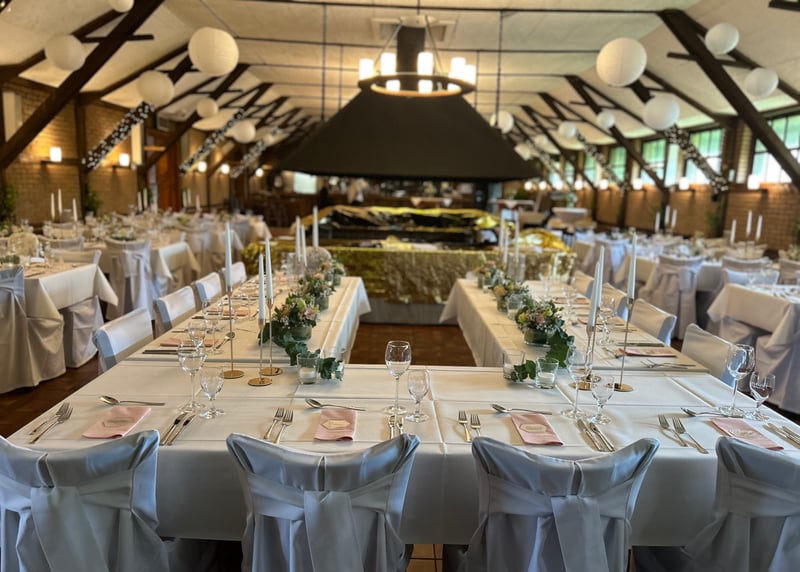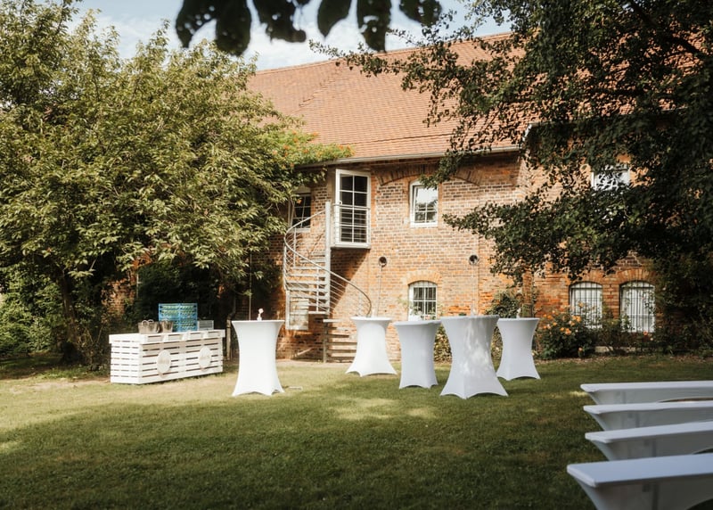 Kuhstall in der Nähe von Hamburg: Der umgebaute Kuhstall verfügt über ein geräumiges Interieur und bietet in gemütlicher Atmosphäre Platz für bis zu 120 Gäste. Auch hier gibt es einen schönen Garten für Zeremonien und Empfänge im Freien.