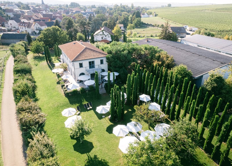 Weingut Vollmayer in der Nähe von Stuttgart: Hier schlagt ihr gleich zwei Fliegen mit einer Klappe, denn ihr habt Weingut und romantische Scheune in einem. Mit bis zu 120 Gästen könnt ihr hier einen atemberaubenden Blick auf die Landschaft genießen.