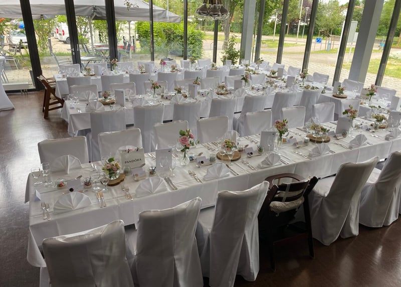 F�r das Catering eignen sich Bio-Produkte und saisonale Men�s perfekt � so unterst�tzt ihr lokale Bauern und minimiert den �kologischen Fu�abdruck. Setzt auf recycelbare oder wiederverwendbare Dekorationen wie Glasvasen, Stoffservietten und nat�rliche Materialien. Die sehen nicht nur gut aus, sondern freuen auch die Umwelt.