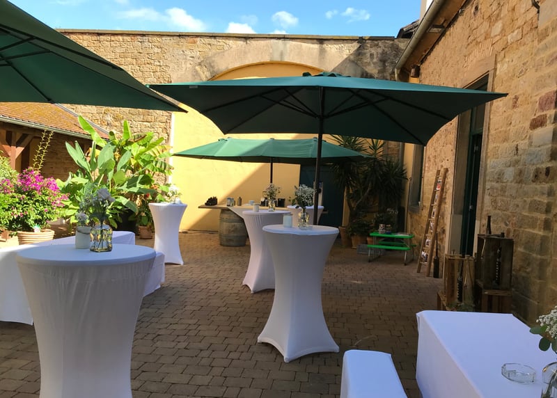 • Weingut Vollmayer in der Nähe von Stuttgart: Hier schlagt ihr gleich zwei Fliegen mit einer Klappe, denn ihr habt Weingut und romantische Scheune in einem. Mit bis zu 120 Gästen könnt ihr hier einen atemberaubenden Blick auf die Landschaft genießen.