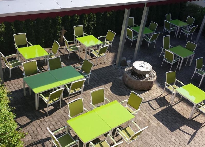 Weingut von Winning (Pfalz): Mit stilvollem Ambiente und einer wundersch�nen Terrasse ist dieses Weingut wie gemacht f�r eine intime Hochzeit in Deutschland mit Blick auf die Reben.