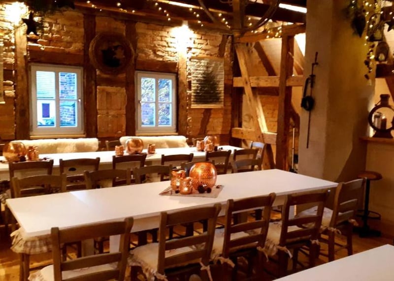 • Scheunencafé in der Nähe von Frankfurt: Die rustikale Scheune mit freiliegenden Holzbalken bietet Platz für bis zu 150 Gäste. Toll für den Sommer: Es gibt einen schönen Außenbereich für Zeremonien und Empfänge.