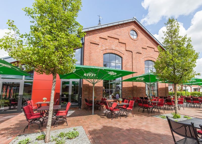 Kuhstall in der Nähe von Hamburg: Der umgebaute Kuhstall verfügt über ein geräumiges Interieur und bietet in gemütlicher Atmosphäre Platz für bis zu 120 Gäste. Auch hier gibt es einen schönen Garten für Zeremonien und Empfänge im Freien.
